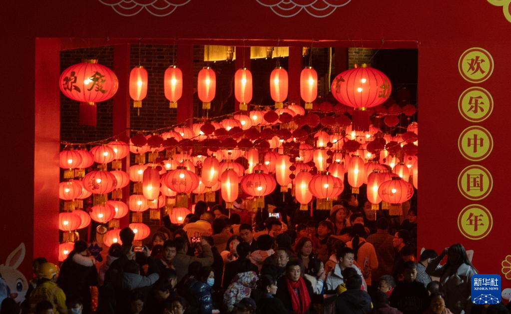 2月5日晚,湖北省宣恩县城兴隆老街人潮涌动。