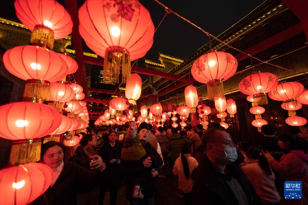 2月5日,市民在贵州省铜仁市中南门历史文化旅游区逛庙会。