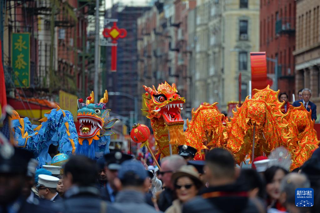 当日,第25届纽约新春大游行文化节在美国纽约曼哈顿唐人街举行。