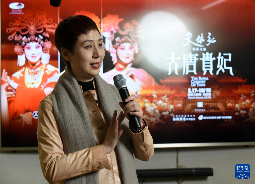 2月14日,京剧演员史依弘在媒体见面会上演唱《大唐贵妃》中的唱段。