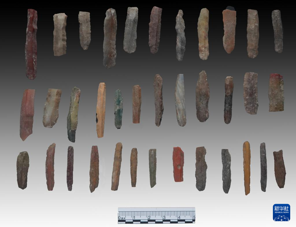 河北尚义四台遗址出土的石叶(资料照片)。