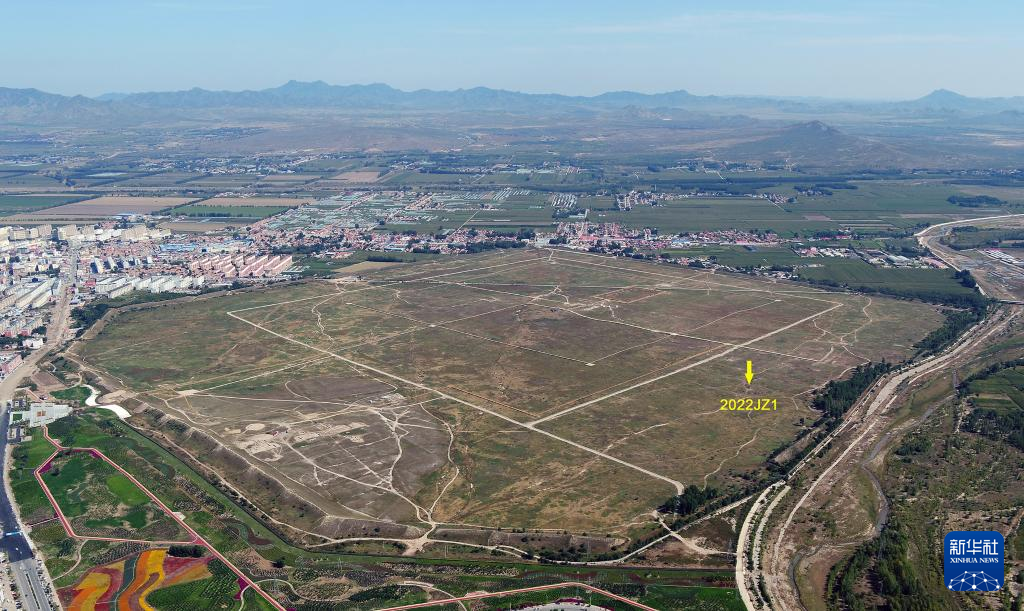 内蒙古巴林左旗辽上京皇城遗址全景和发掘位置(资料照片)。