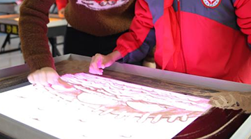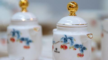 2月18日,刘梅珍在海南昌江石碌镇保突村非遗黎族制陶馆擦拭陶器。