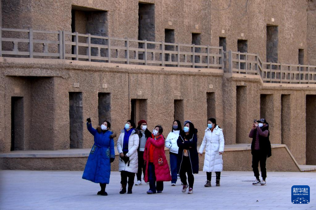 2月23日,参加莫高学堂敦煌文化研学的学员在莫高窟参观。