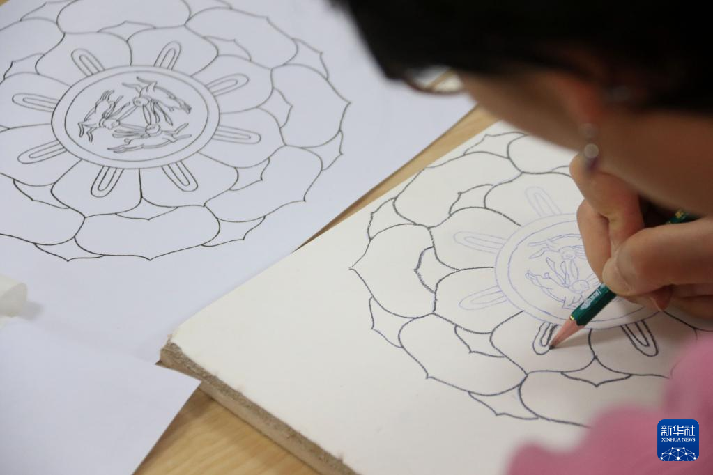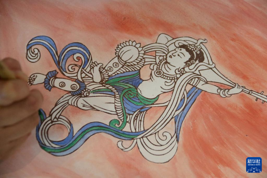 2月23日,学员在敦煌研究院莫高学堂学习临摹敦煌壁画。
