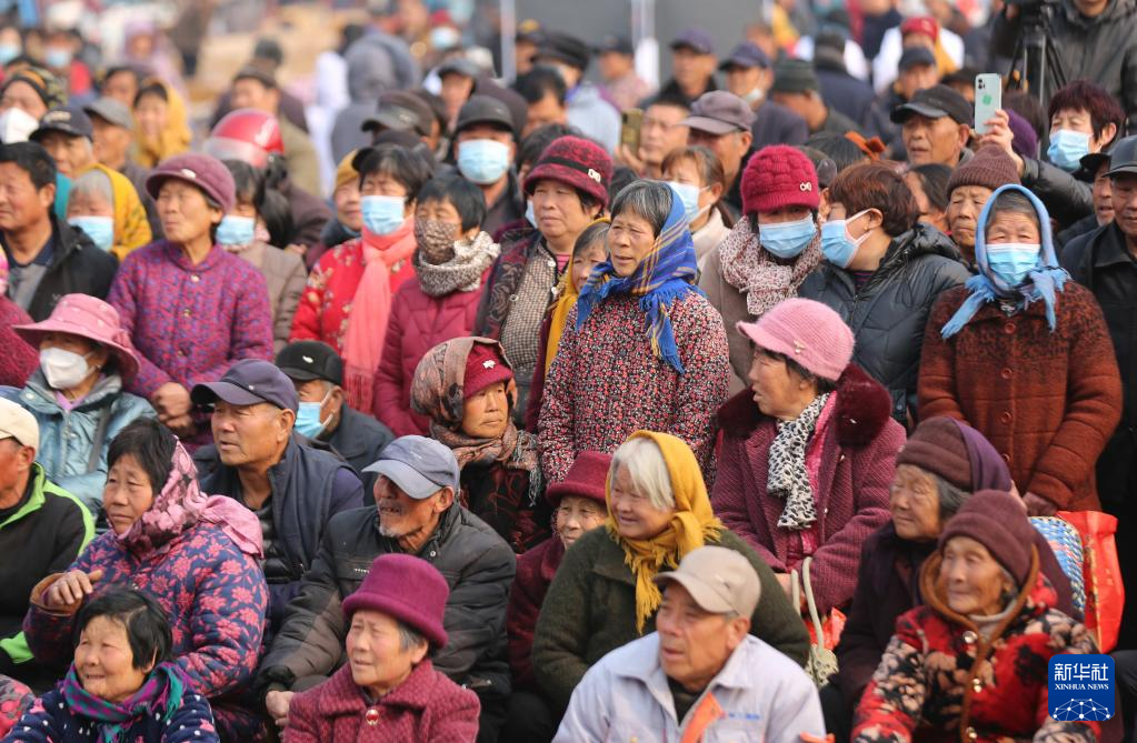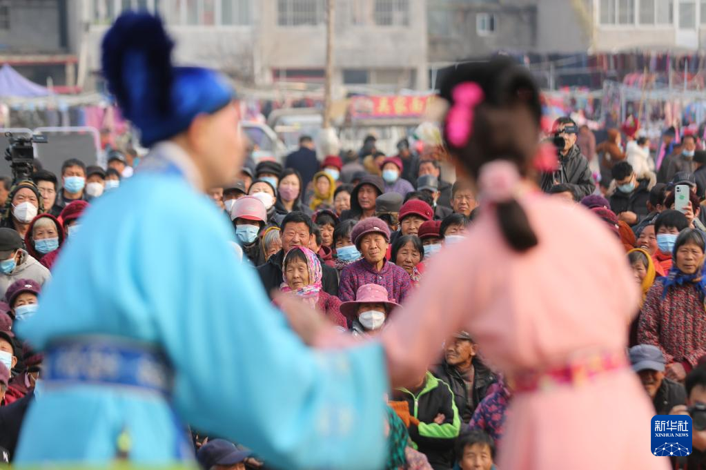 2月24日,在临沂市沂南县依汶镇东依汶村,村民在观看戏曲表演。