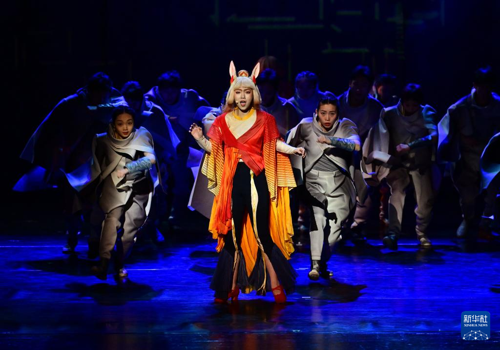 2月25日,演员们在舞台上表演音乐剧《摘星辰》。