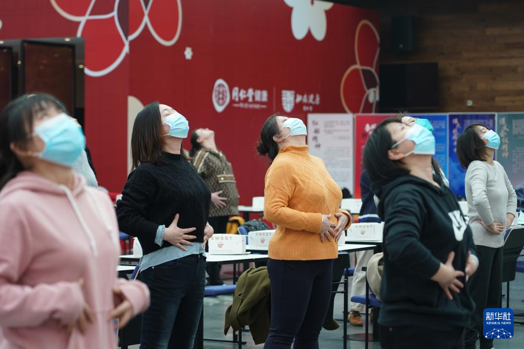 顾客在位于北京大兴区的同仁堂知嘛健康零号店体验健康训练课程(2月27日摄)。