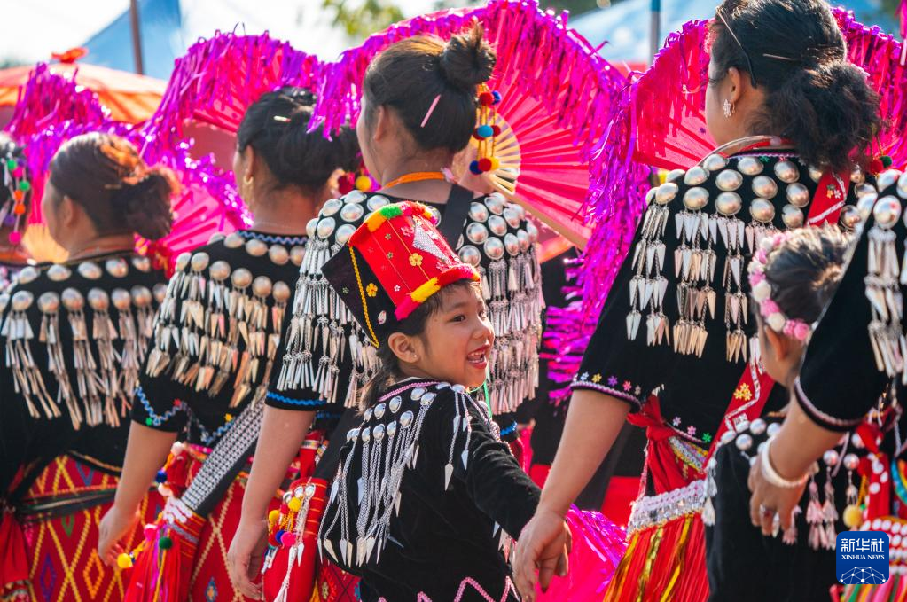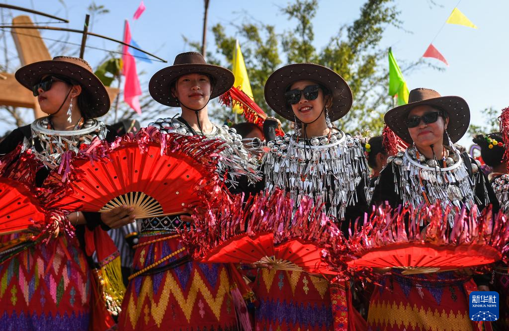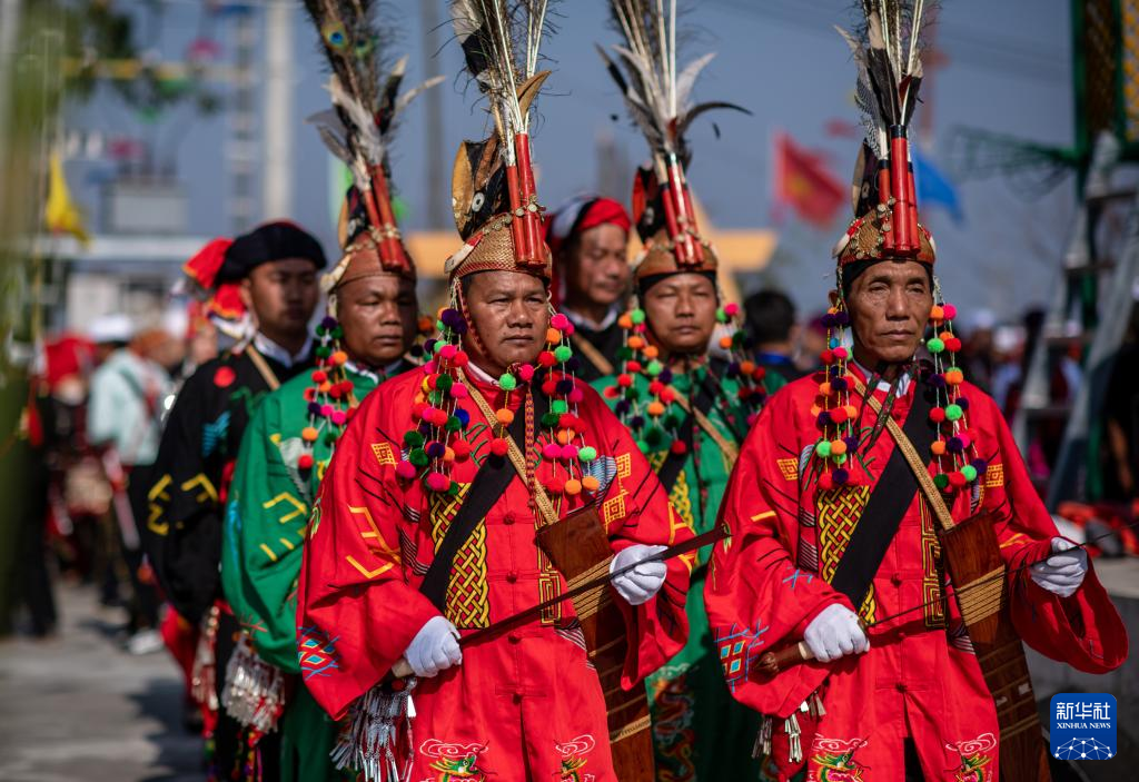 当日,云南省德宏傣族景颇族自治州瑞丽市2023年目瑙纵歌节在位于中缅边境的勐秀乡户瓦山寨开幕。