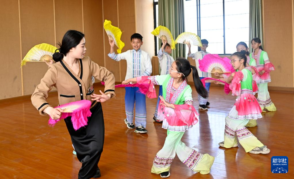 近年来,广西柳州市柳城县教育部门把彩调的一些曲目编排成简单易学的校园广播操,并逐步在该县的各小学推广,丰富校园文化生活的同时,也让学生感受到非遗文化的魅力。彩调剧作为广西地方传统戏剧,被列入第一批国家级非物质文化遗产名录。