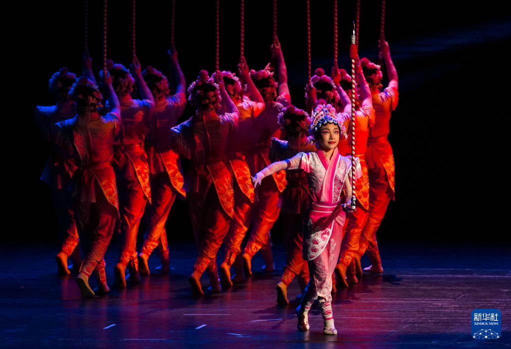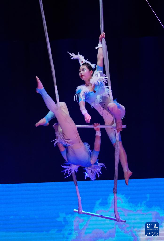3月21日,在位于山东省济南市的山东省会大剧院,演员表演杂技节目《曙光》。