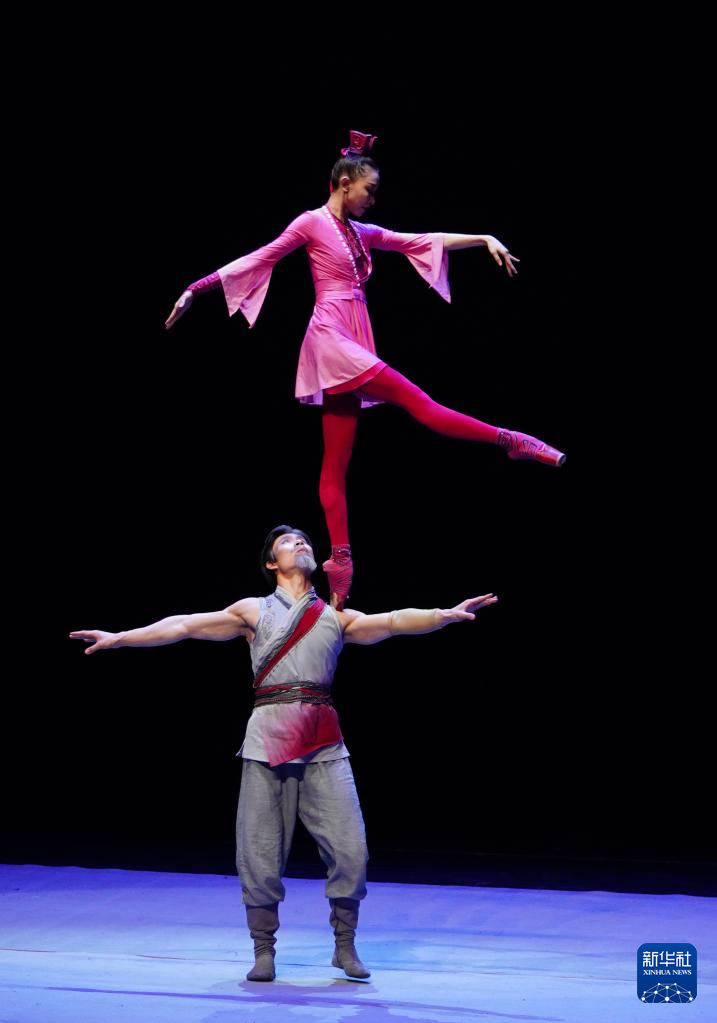 3月21日,在位于山东省济南市的山东省会大剧院,演员表演杂技节目《花木兰》。