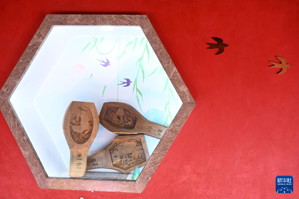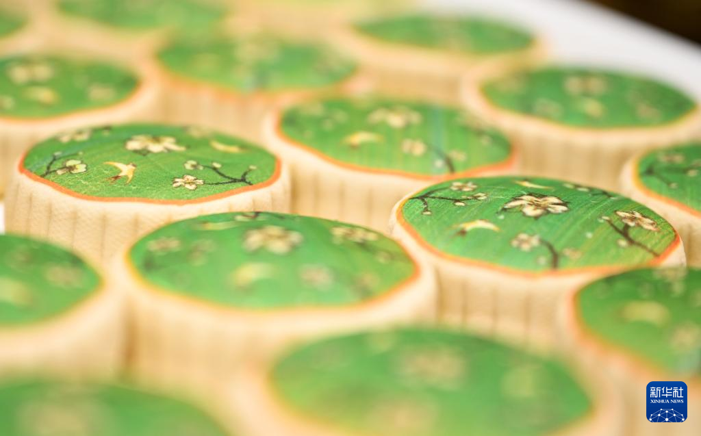 这是店内摆放的与节气相关的糕点模具(3月23日摄)。