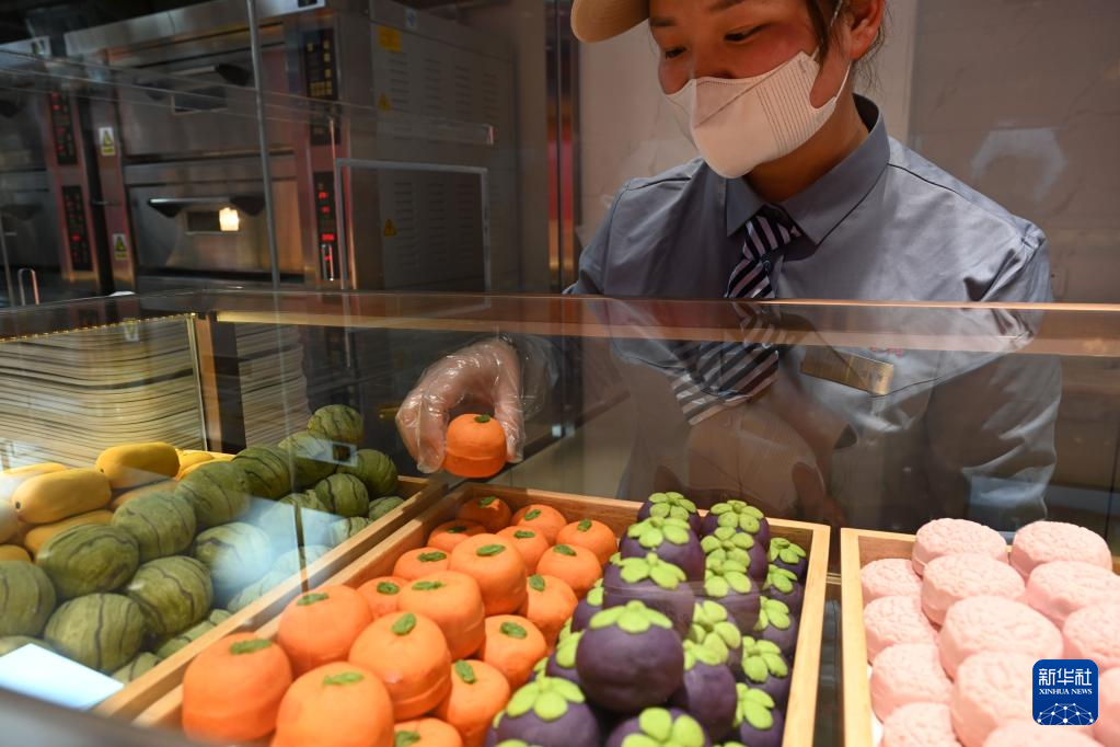 3月23日拍摄的北京稻香村二十四节气主题店。