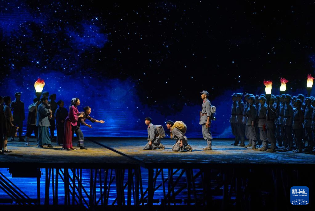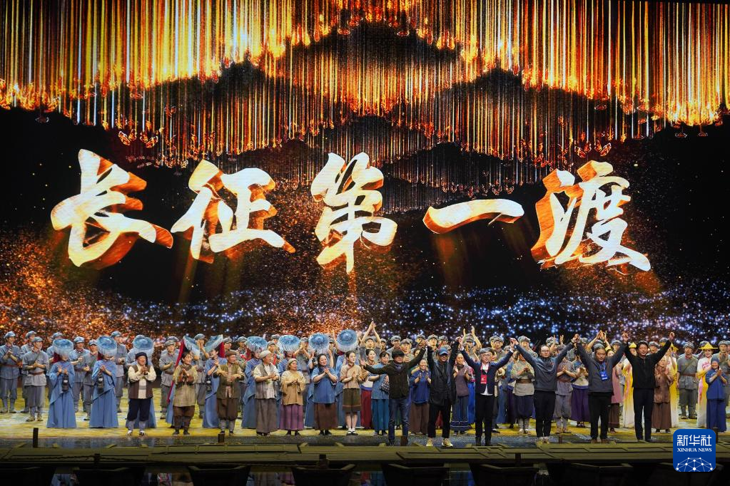 3月23日晚,《长征第一渡》在江西省于都县长征大剧院首演。本剧以长征中的重大事件为节点,运用兼具故事性和艺术欣赏性的现代影像和舞台技术,讲述了波澜壮阔的长征故事,让观众在沉浸式体验中感受长征时期的峥嵘岁月。