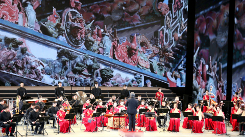 当日,在2023中国·桐庐山水艺术季活动期间,一场名为“在富春金黄的日子里”的沉浸式演出在浙江省桐庐县桐君街道梅蓉村上演,吸引游客驻足欣赏。