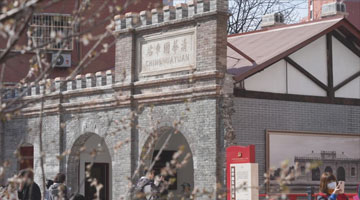 3月26日,演员在梅蓉村的油菜花田里表演“十里红妆”婚嫁场景。