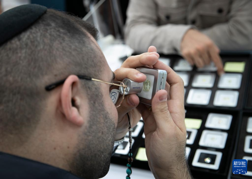 这是3月29日在以色列拉马特甘拍摄的2023以色列国际钻石展现场。