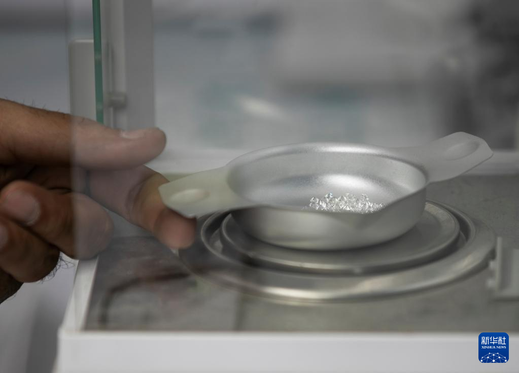 3月29日,参展商在以色列拉马特甘的钻石展上为钻石称重。