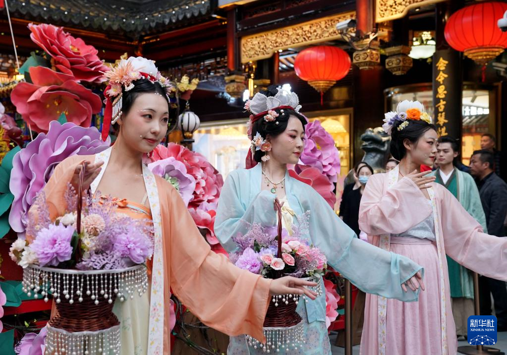 当日,上海豫园2023“仲春花朝节”沉浸式游园系列活动拉开帷幕。作为“节气江南”系列活动之一,豫园“仲春花朝节”以古时花朝节为灵感,通过花车、巡游、市集、装置等,让游客感受国风韵味,畅游春日豫园。