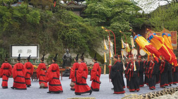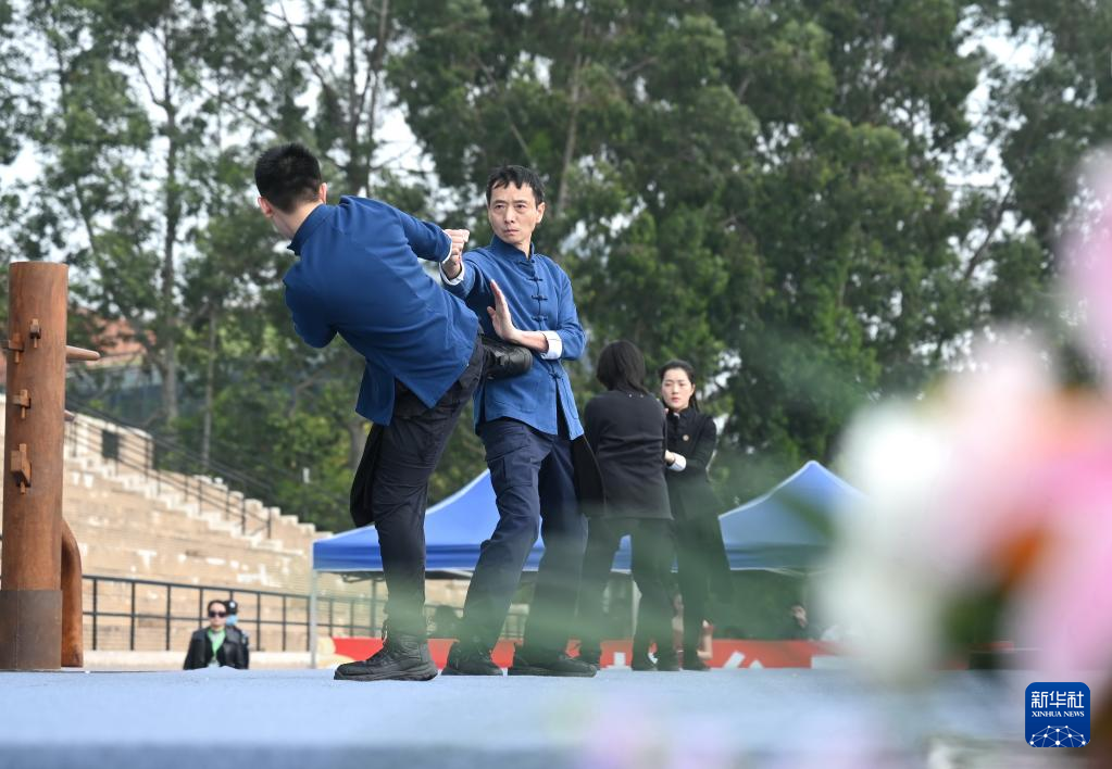 4月8日,表演者在福州大学城“优秀传统文化进校园”开幕式上演出咏春拳《龙的传人》。