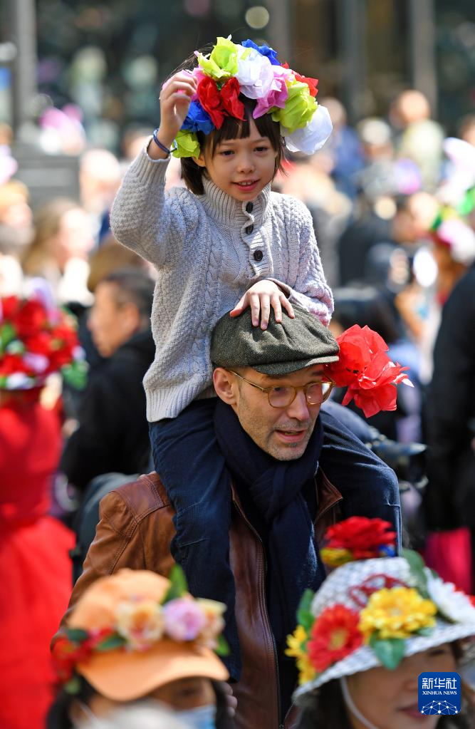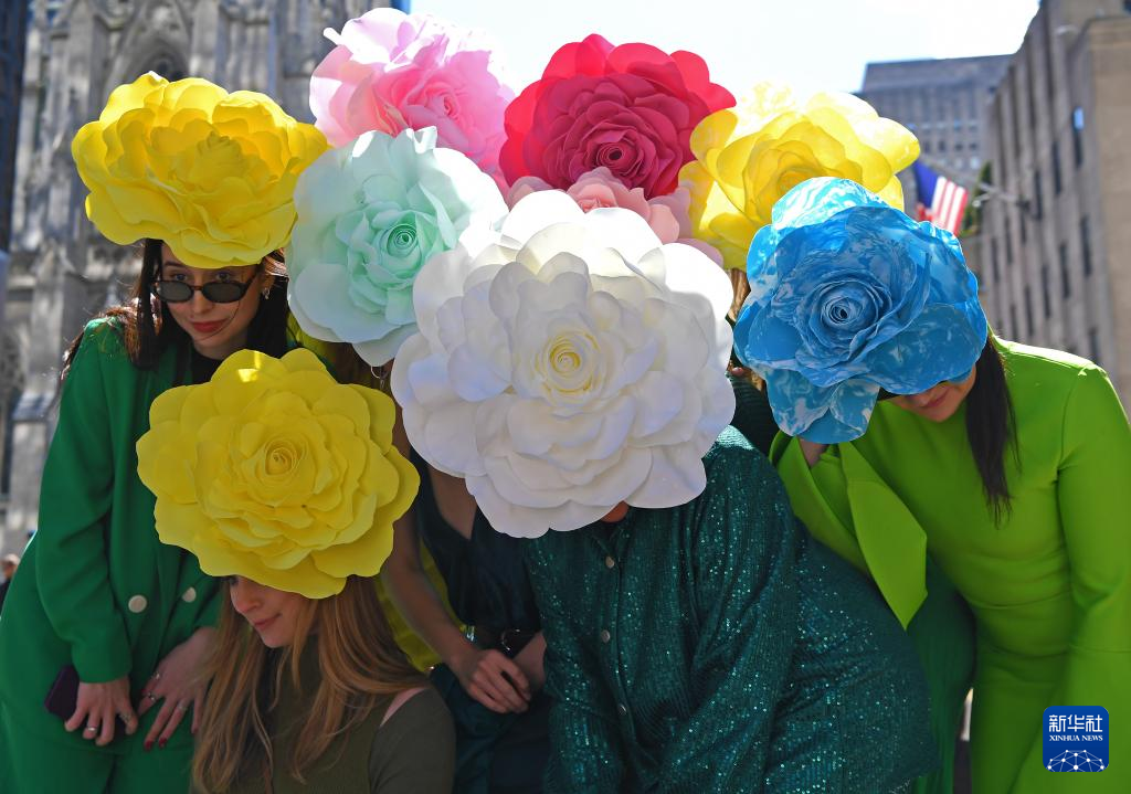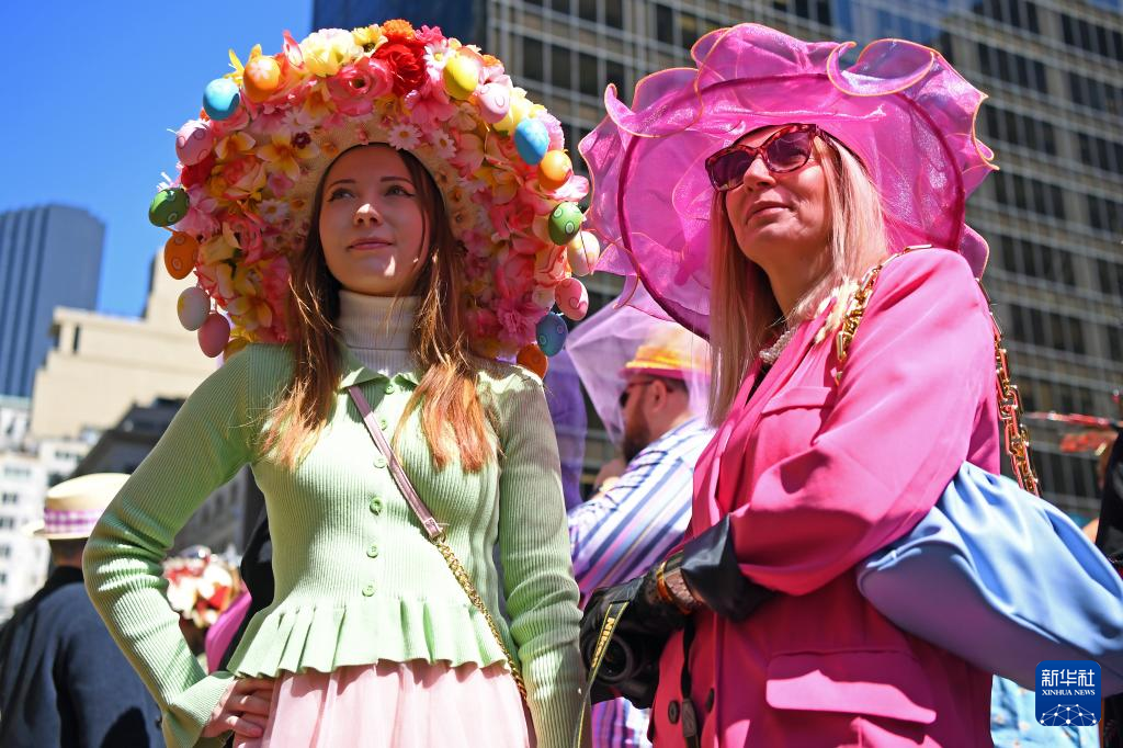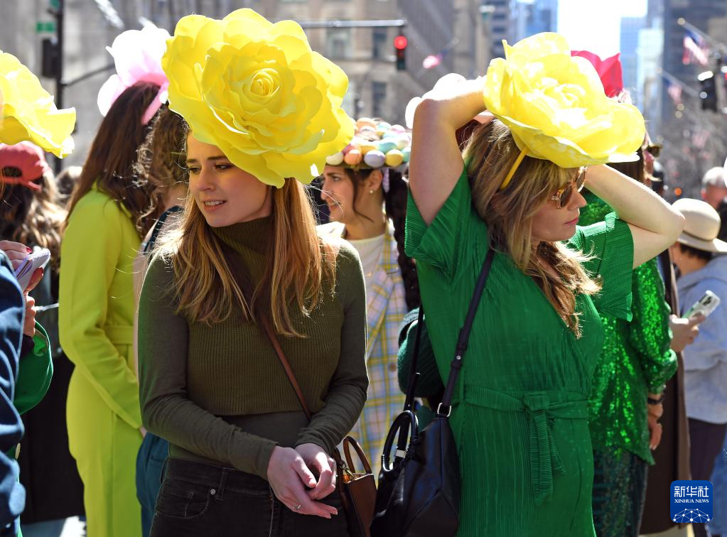 当日是西方传统节日复活节,人们头戴精心制作的花帽,在纽约第五大道参加一年一度的复活节游行。