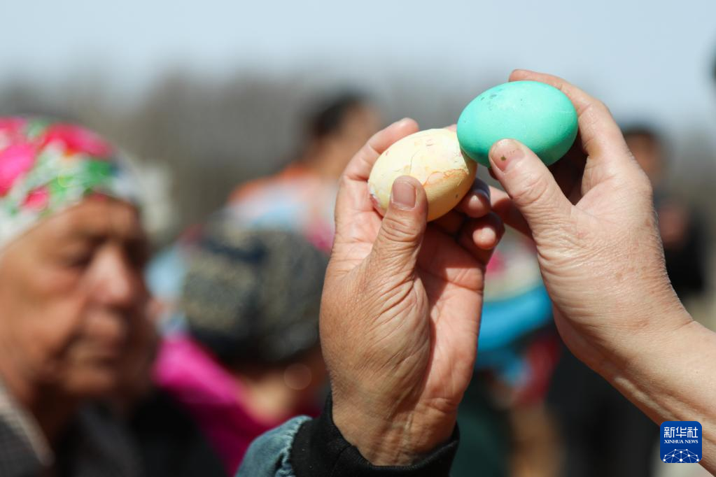4月16日,当地群众撞彩蛋,庆祝巴斯克节。