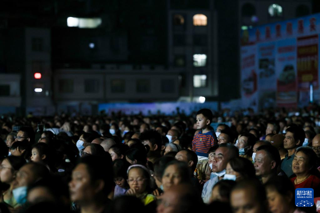 4月17日,群众在开幕式上观看文艺表演。