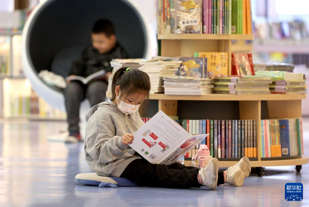 4月22日,小朋友在河北省石家庄市一家书店内阅读绘本。