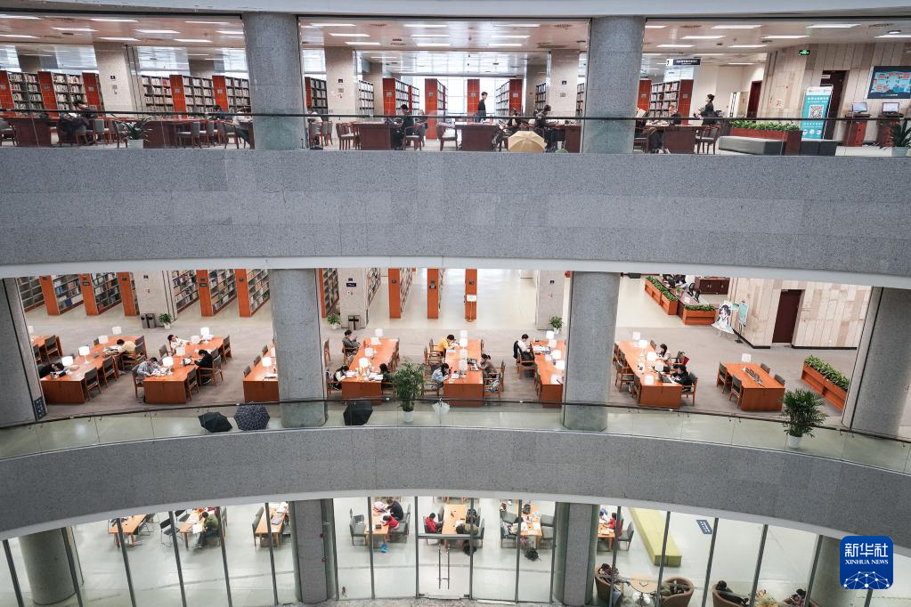 4月22日,人们在位于武汉市的湖北省图书馆内阅读。