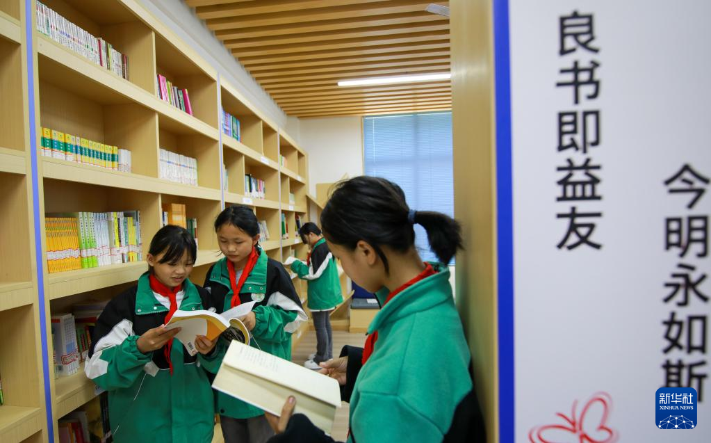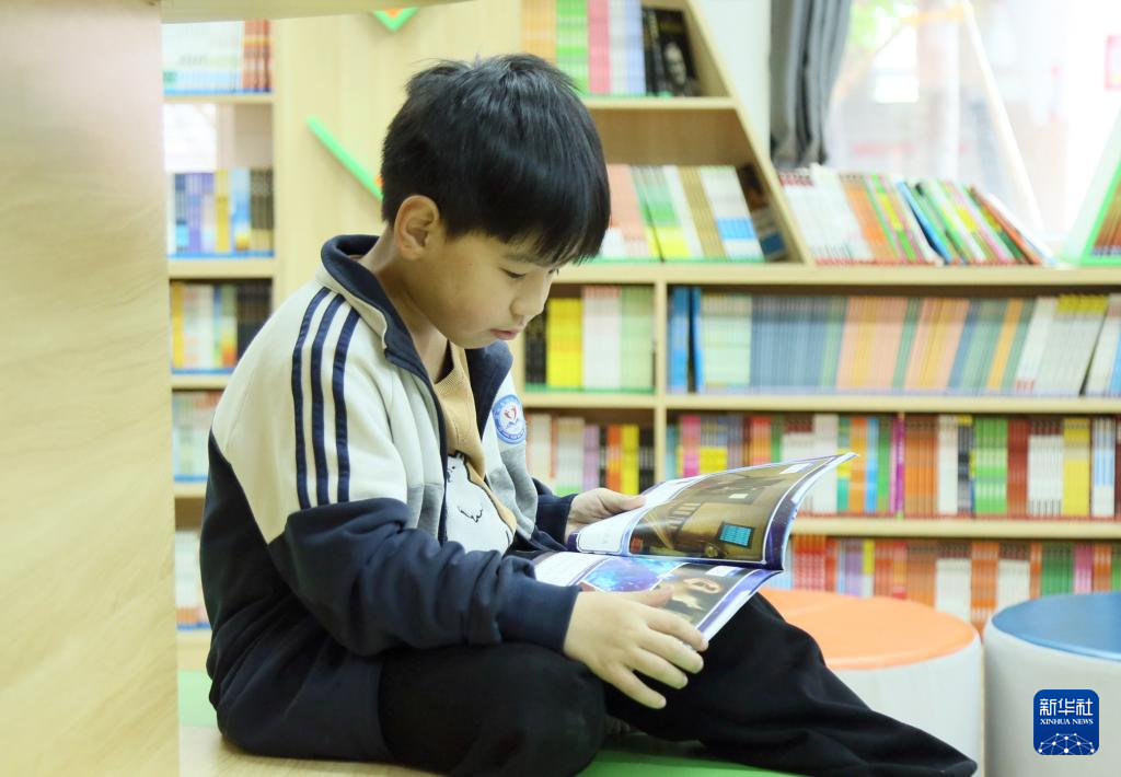 4月22日,学生在贵州省黔东南苗族侗族自治州从江县城关第三小学的图书室里阅读。