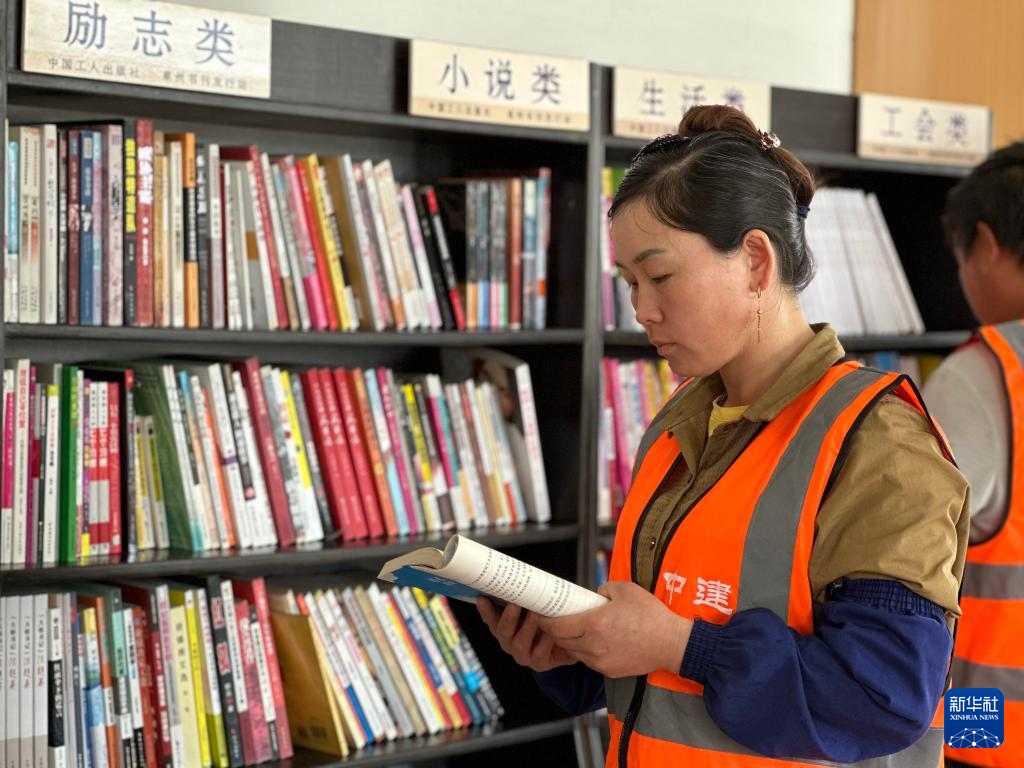 4月22日,在福建省厦门市一间为建筑工人打造的“工友图书室“,一名工人在阅读。