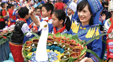 4月22日,市民在“换书大集”上挑选完图书后准备拿到图书馆阅读。