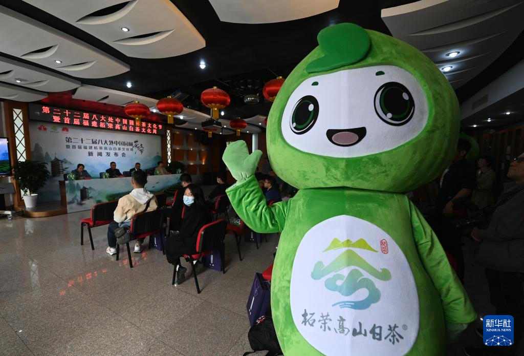 4月25日,代表柘荣高山白茶的吉祥物“木石仔”在茶文化节新闻发布会上亮相。