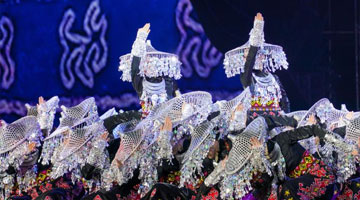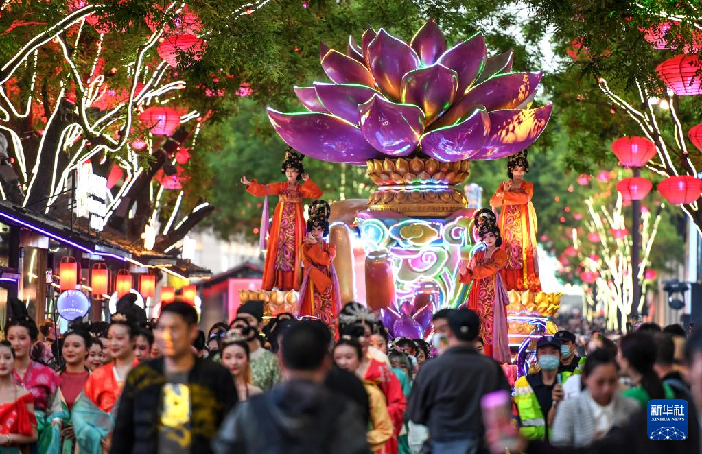 4月25日,花车巡游在西安大唐不夜城步行街举行。