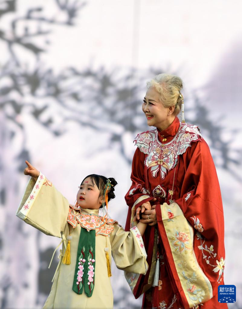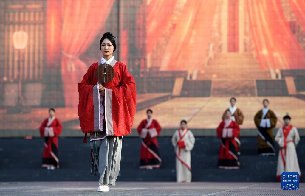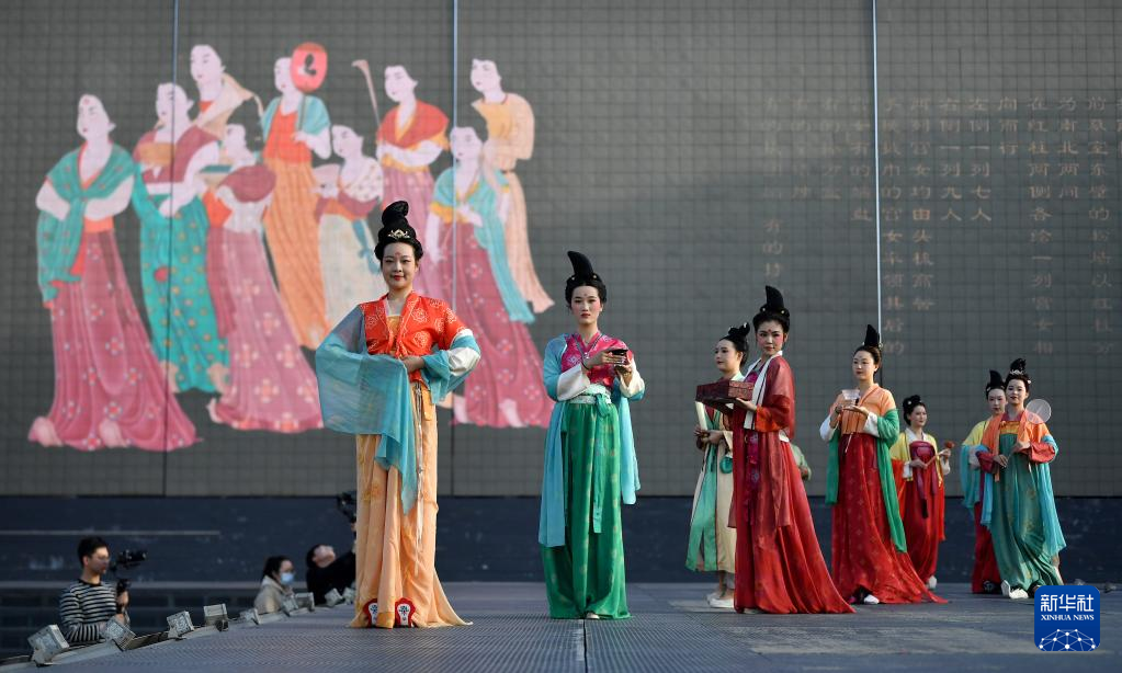 4月25日,华服走秀在西安大唐不夜城步行街举行。