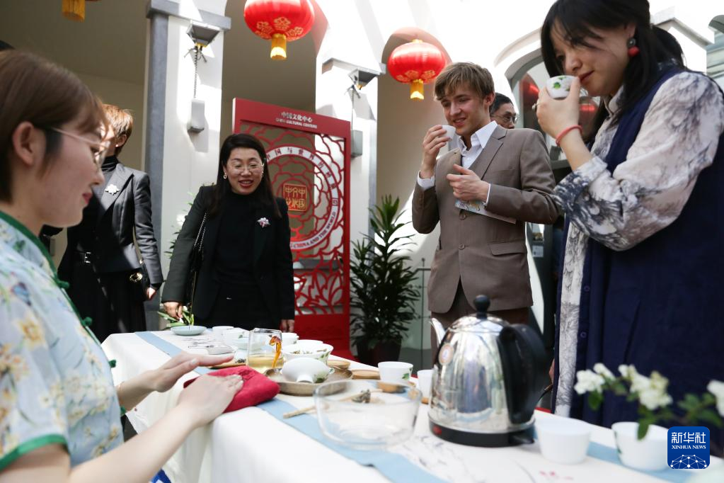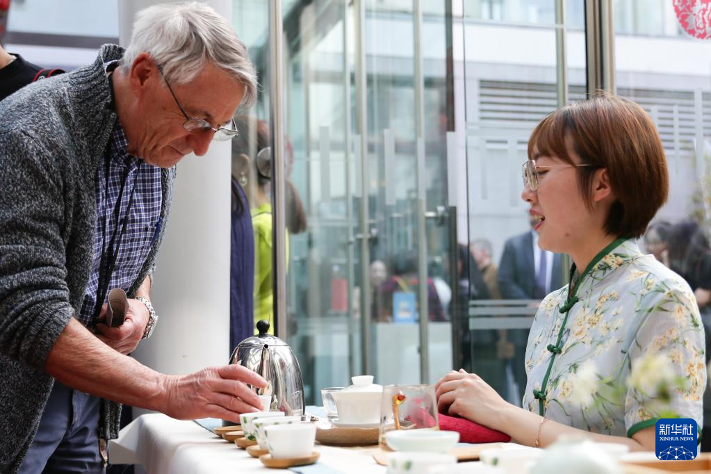 5月4日,人们在比利时布鲁塞尔的中国文化中心品茗。