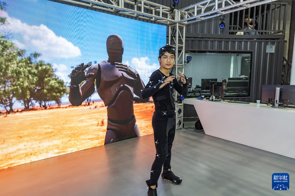 5月5日,在中国影视科技创新成果展上,参展企业展示惯性动捕技术。