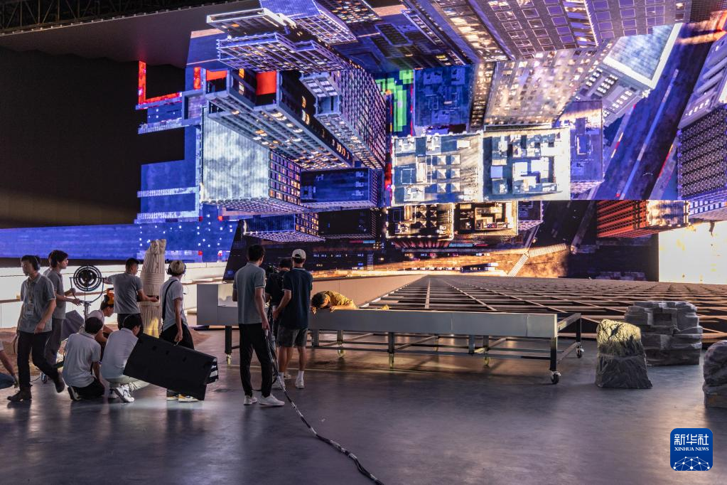 5月5日,在中国影视科技创新成果展上,参展企业展示LED虚拟拍摄系统。