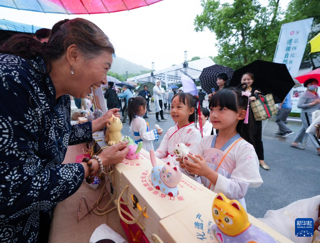 5月6日,居民在非遗集市展示手工艺品“半山泥猫”。