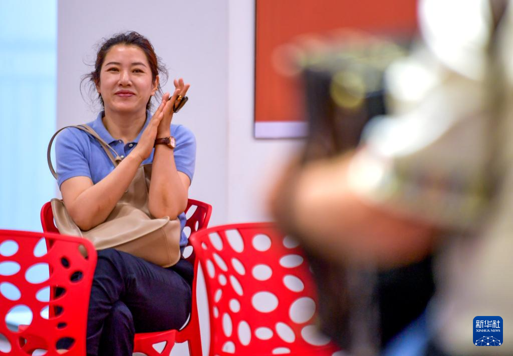 5月18日,在位于伊宁市六星街的亚历山大手风琴珍藏馆,游客在欣赏乐手们的演出。
