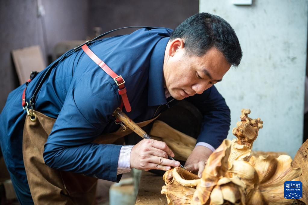 洞口木雕发祥于湖南省邵阳市洞口县,历史悠久,上个世纪80年代以来,洞口木雕产品远销海外。傅立先是洞口木雕非遗传承人,他的爷爷傅满山和父亲傅金林曾是木雕工艺厂的老师傅。近年来,傅立先对洞口木雕的创作方向进行新的探索,把传统工艺与现代文化相结合,创作出很多精美的木雕作品。