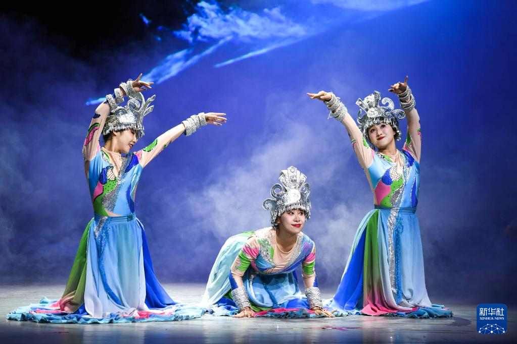 6月5日,演员在贵阳大剧院的《多彩贵州风》演出中表演节目《水姑娘》。