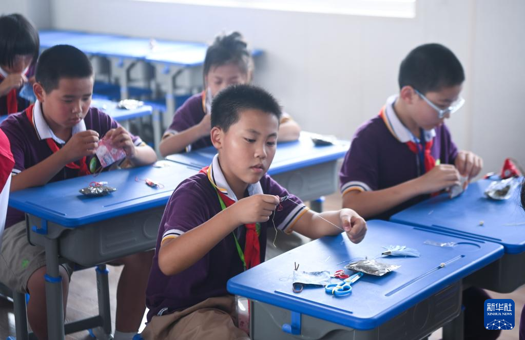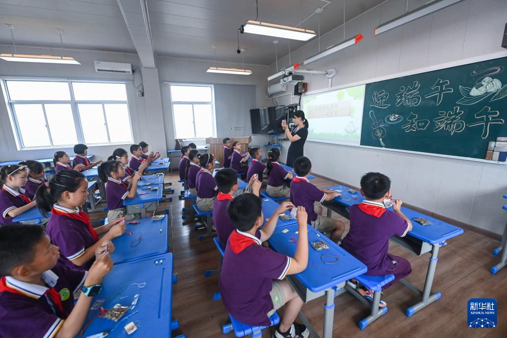 6月8日,学生们在传统习俗课上学习制作香囊。
