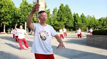 6月9日,太极拳爱好者在河北省邢台市任泽区人民广场展示王其和太极拳。