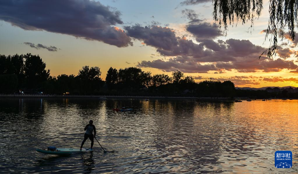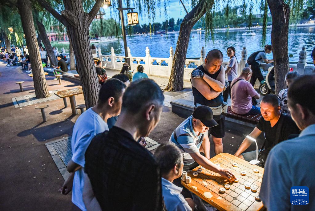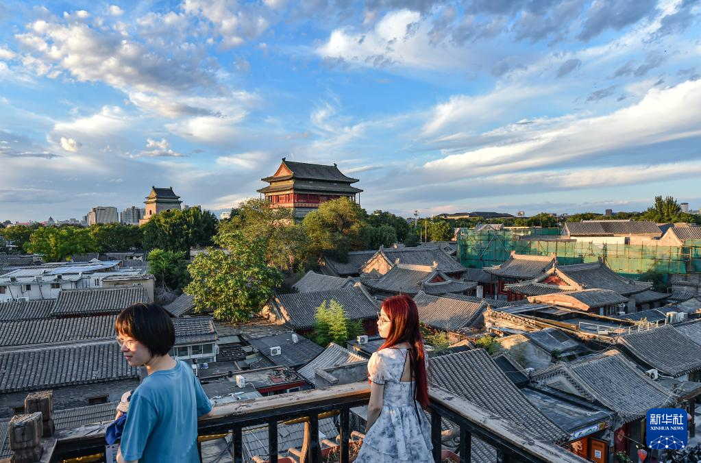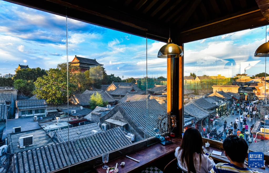 6月10日,人们在北京什刹海附近咖啡厅露台欣赏风景。