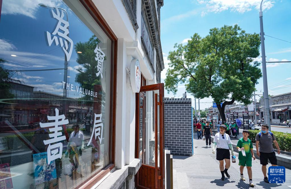 6月11日,位于北京地安门外大街一处文物建筑内,以北京中轴线为主题的书店吸引路人的目光。
