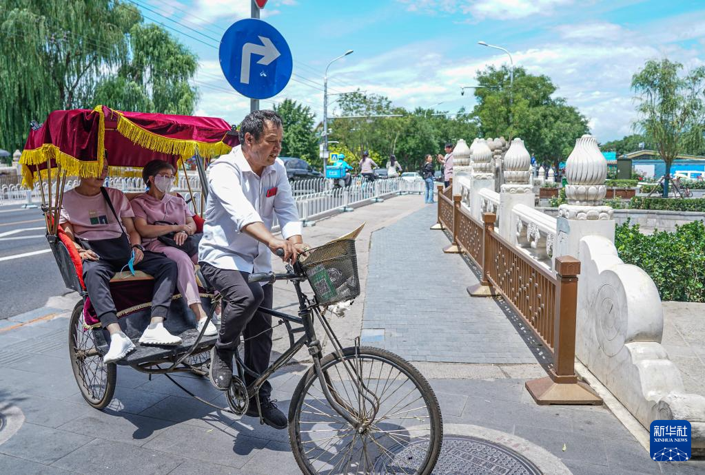 6月11日,游客乘坐人力三轮车经过始建于元代的万宁桥。