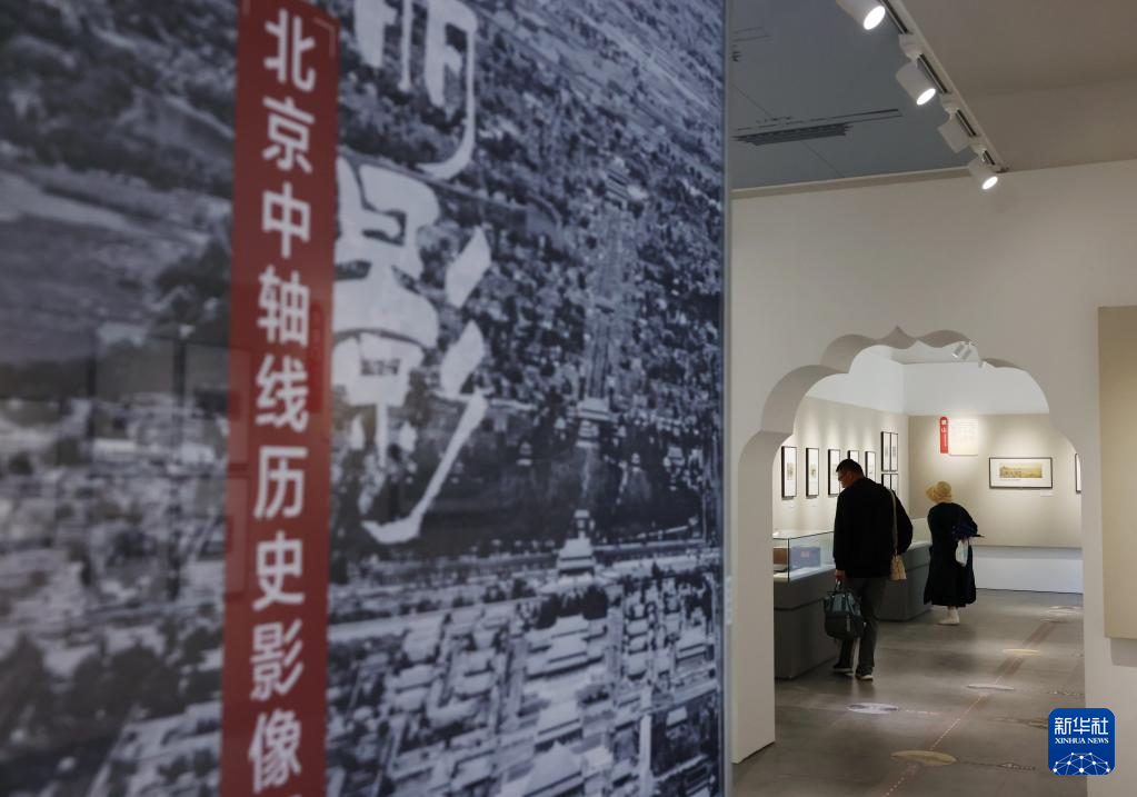 6月6日,游客在北京市中山公园参观“中轴丽影——北京中轴线历史影像原作展”。