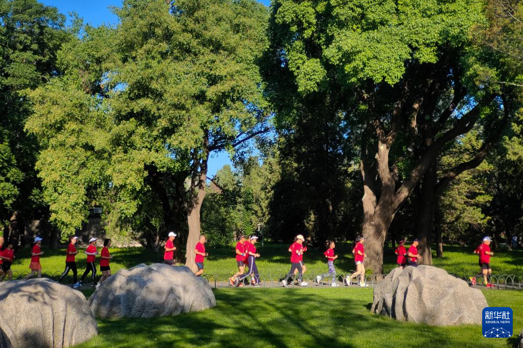 6月3日,跑步爱好者在北京天坛公园内晨跑(手机照片)。